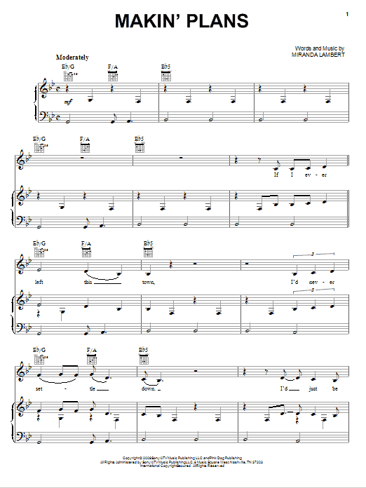 Miranda Lambert Makin' Plans sheet music, chords, lyrics - Printable PDF for Piano, Vocal & Guitar (Right-Hand Melody)