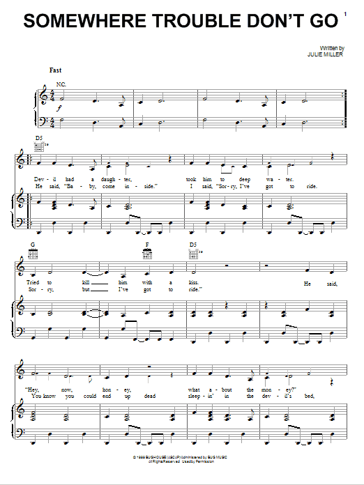 Miranda Lambert Somewhere Trouble Don't Go sheet music, chords, lyrics - Printable PDF for Piano, Vocal & Guitar (Right-Hand Melody)