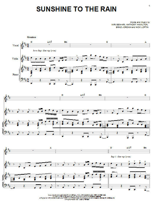 Miri Ben-Ari featuring Scarface & Anthony Hamilton Sunshine To The Rain sheet music, chords, lyrics - Printable PDF for Piano, Vocal & Guitar (Right-Hand Melody)