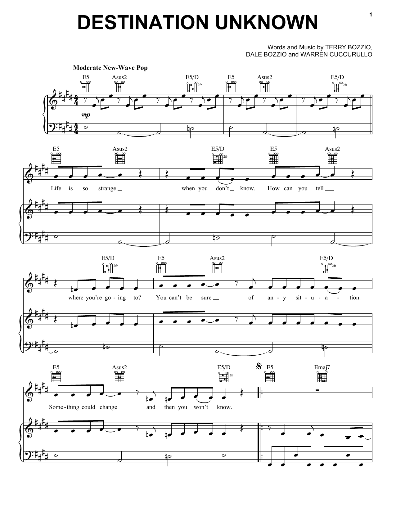Missing Persons Destination Unknown sheet music, chords, lyrics - Printable PDF for Piano, Vocal & Guitar (Right-Hand Melody)
