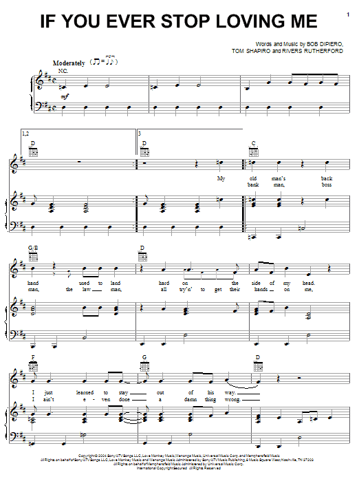 Montgomery Gentry If You Ever Stop Loving Me sheet music, chords, lyrics - Printable PDF for Piano, Vocal & Guitar (Right-Hand Melody)
