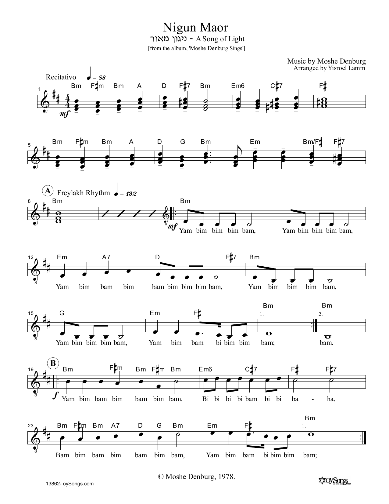 Moshe Denburg Nigun Maor sheet music, chords, lyrics - Printable PDF for Melody Line, Lyrics & Chords