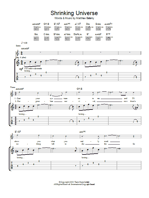 Muse Shrinking Universe sheet music, chords, lyrics - Printable PDF for Guitar Tab