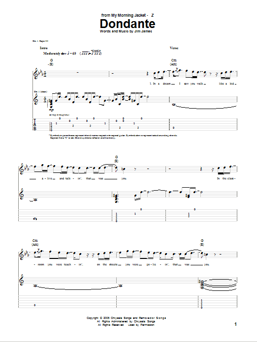 My Morning Jacket Dondante sheet music, chords, lyrics - Printable PDF for Guitar Tab