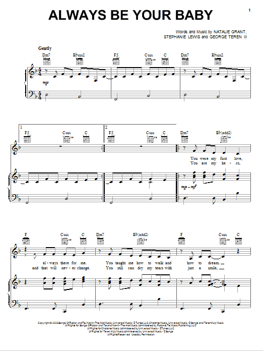 Natalie Grant Always Be Your Baby sheet music, chords, lyrics - Printable PDF for Piano, Vocal & Guitar (Right-Hand Melody)