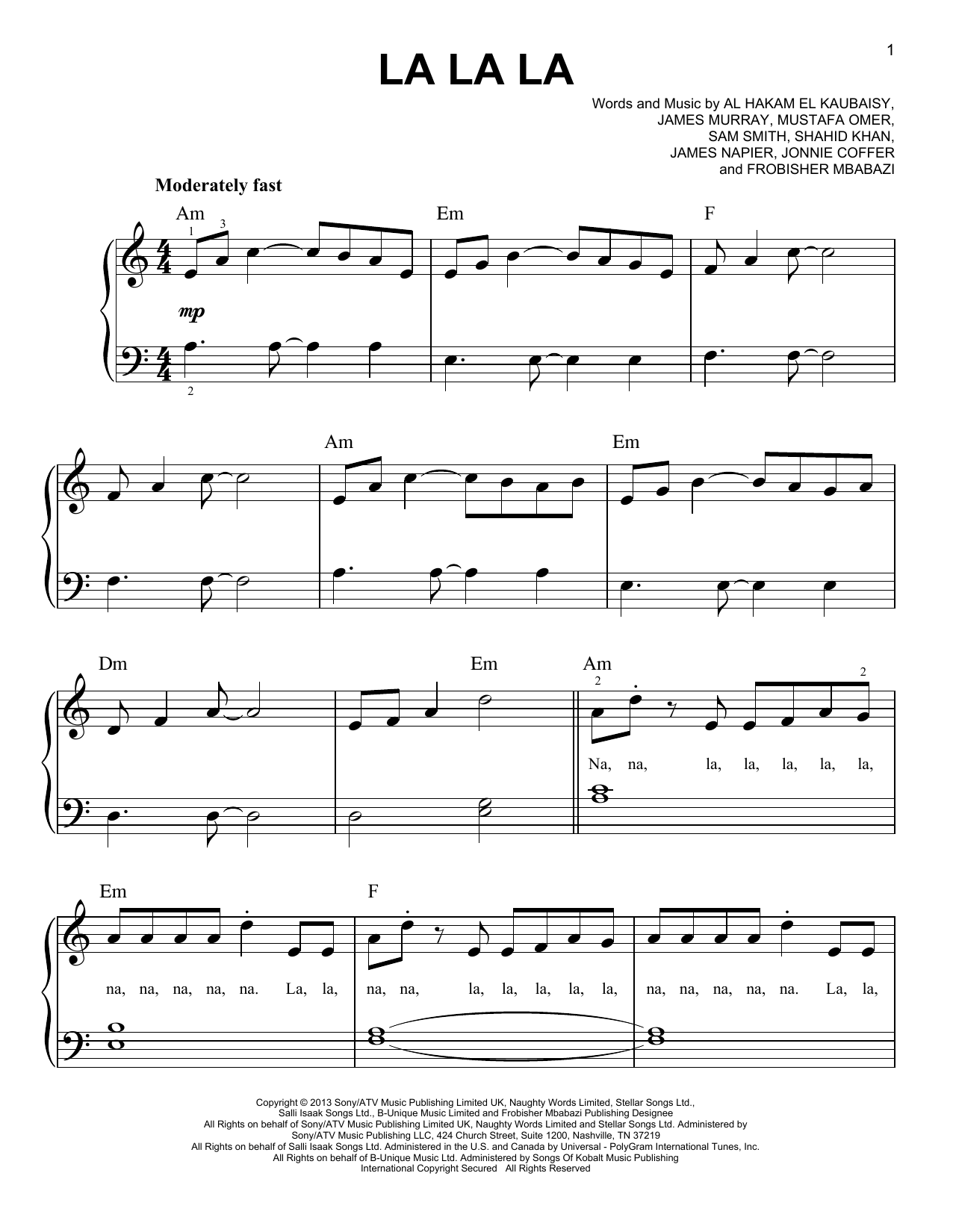 Naughty Boy La La La (feat. Sam Smith) sheet music, chords, lyrics - Printable PDF for Easy Piano