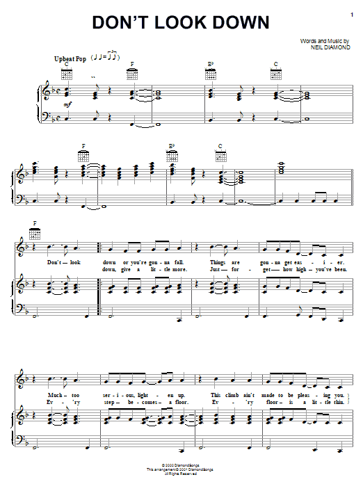 Neil Diamond Don't Look Down sheet music, chords, lyrics - Printable PDF for Piano, Vocal & Guitar (Right-Hand Melody)