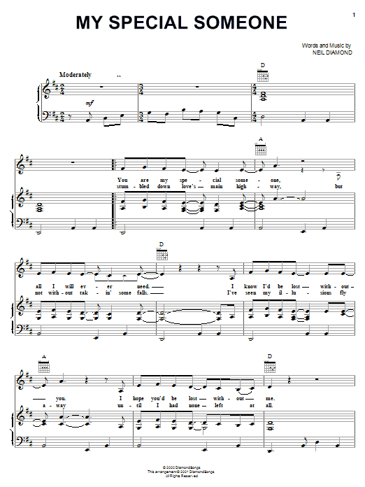Neil Diamond My Special Someone sheet music, chords, lyrics - Printable PDF for Piano, Vocal & Guitar (Right-Hand Melody)