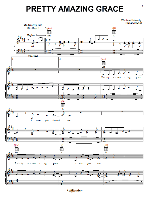 Neil Diamond Pretty Amazing Grace sheet music, chords, lyrics - Printable PDF for Piano, Vocal & Guitar (Right-Hand Melody)