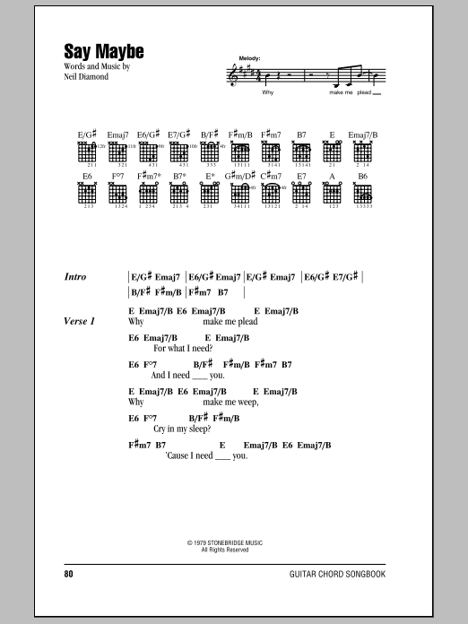 Neil Diamond Say Maybe sheet music, chords, lyrics - Printable PDF for Lyrics & Chords