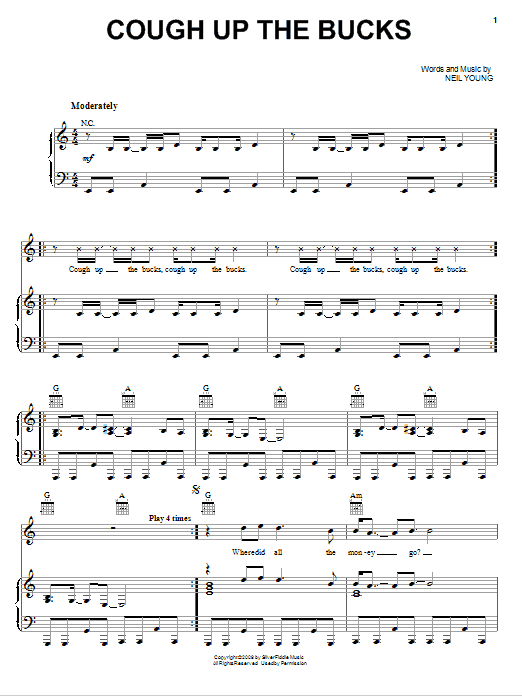 Neil Young Cough Up The Bucks sheet music, chords, lyrics - Printable PDF for Piano, Vocal & Guitar (Right-Hand Melody)