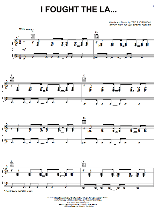 Newsboys I Fought The La... sheet music, chords, lyrics - Printable PDF for Piano, Vocal & Guitar (Right-Hand Melody)