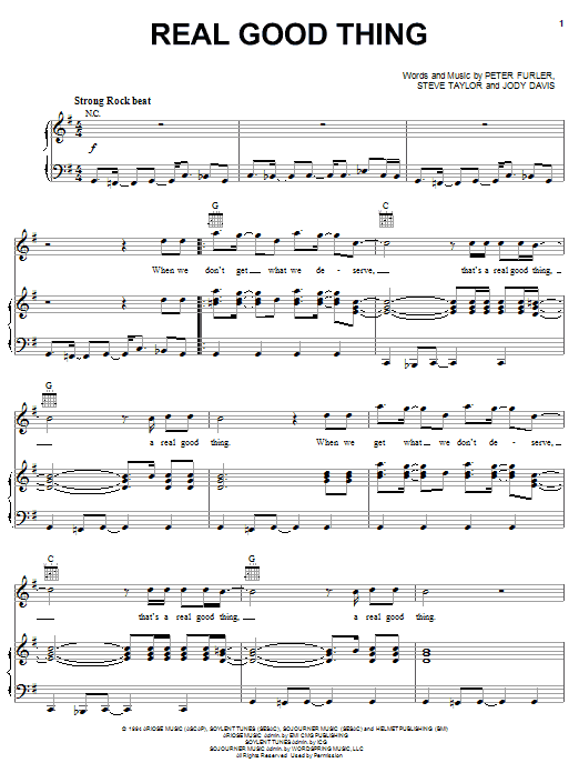 Newsboys Real Good Thing sheet music, chords, lyrics - Printable PDF for Piano, Vocal & Guitar (Right-Hand Melody)