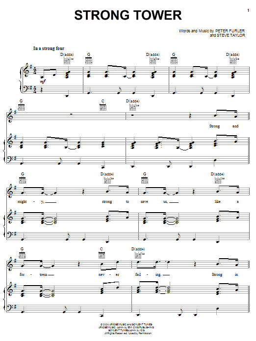 Newsboys Strong Tower sheet music, chords, lyrics - Printable PDF for Piano, Vocal & Guitar (Right-Hand Melody)