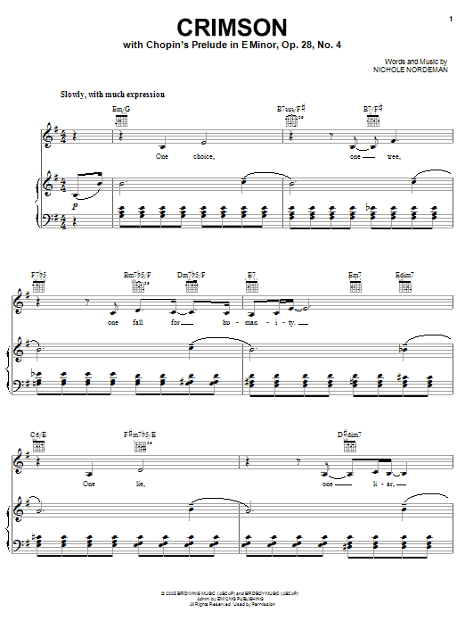 Nichole Nordeman Crimson sheet music, chords, lyrics - Printable PDF for Piano, Vocal & Guitar (Right-Hand Melody)