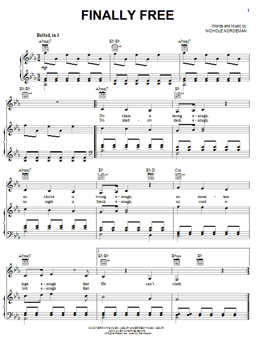 Nichole Nordeman Finally Free sheet music, chords, lyrics - Printable PDF for Piano, Vocal & Guitar (Right-Hand Melody)