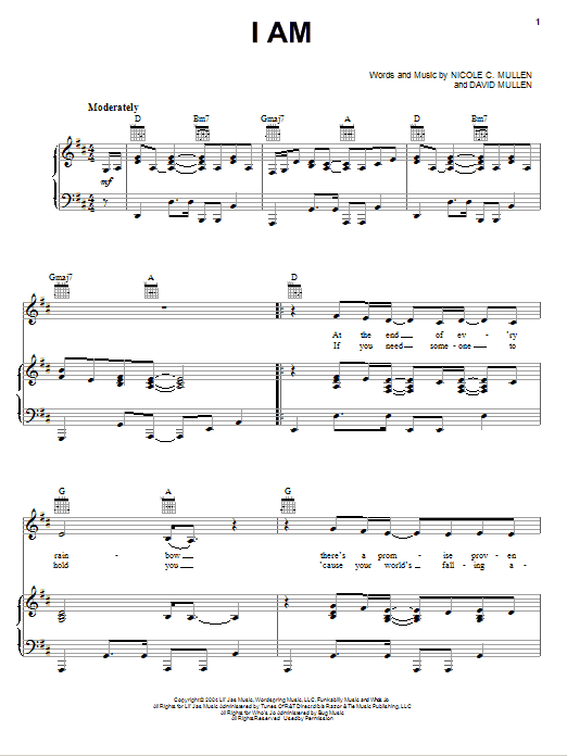 Nicole C. Mullen I Am sheet music, chords, lyrics - Printable PDF for Piano, Vocal & Guitar (Right-Hand Melody)