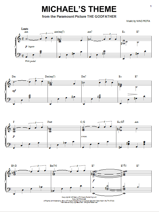 Nino Rota Michael's Theme sheet music, chords, lyrics - Printable PDF for Piano, Vocal & Guitar (Right-Hand Melody)