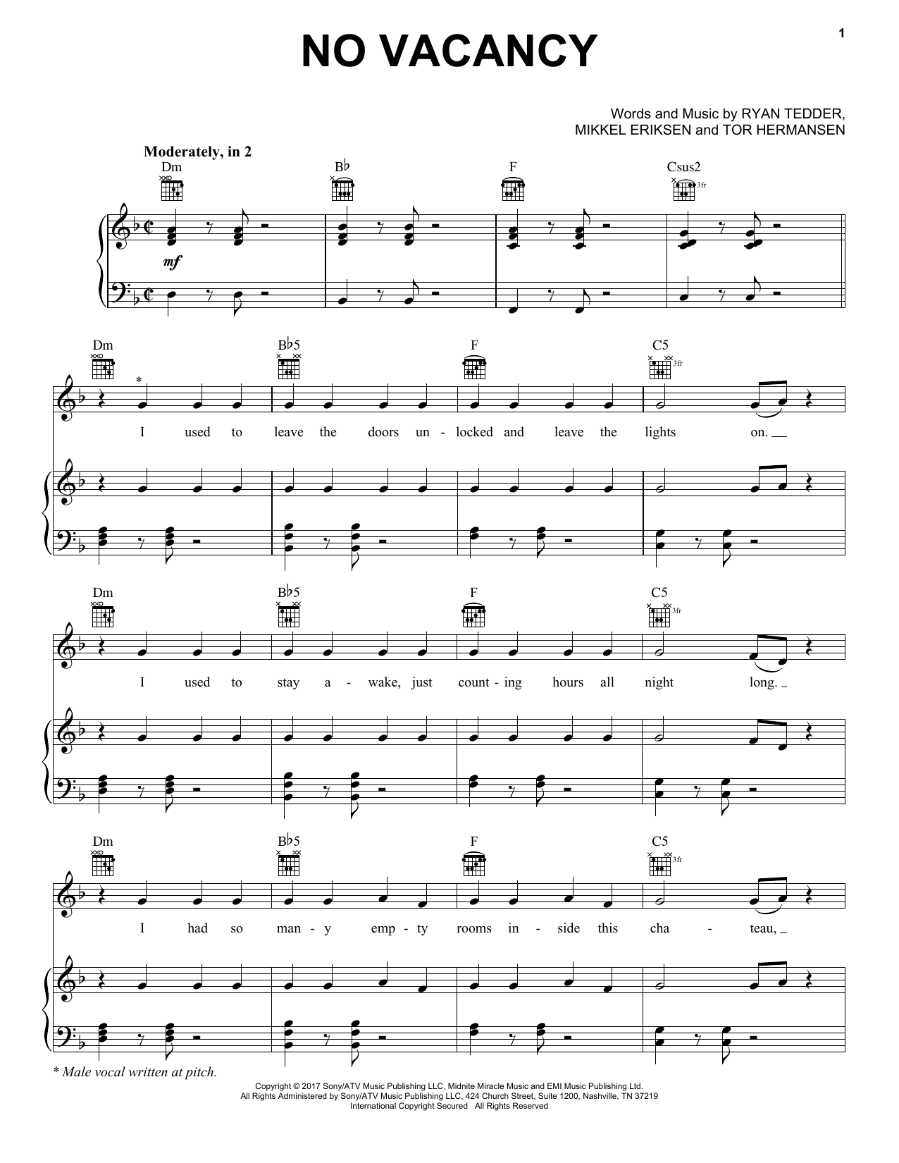 So, go ahead and download No Vacancy sheet music and start playing this wonderful score in bare minutes.