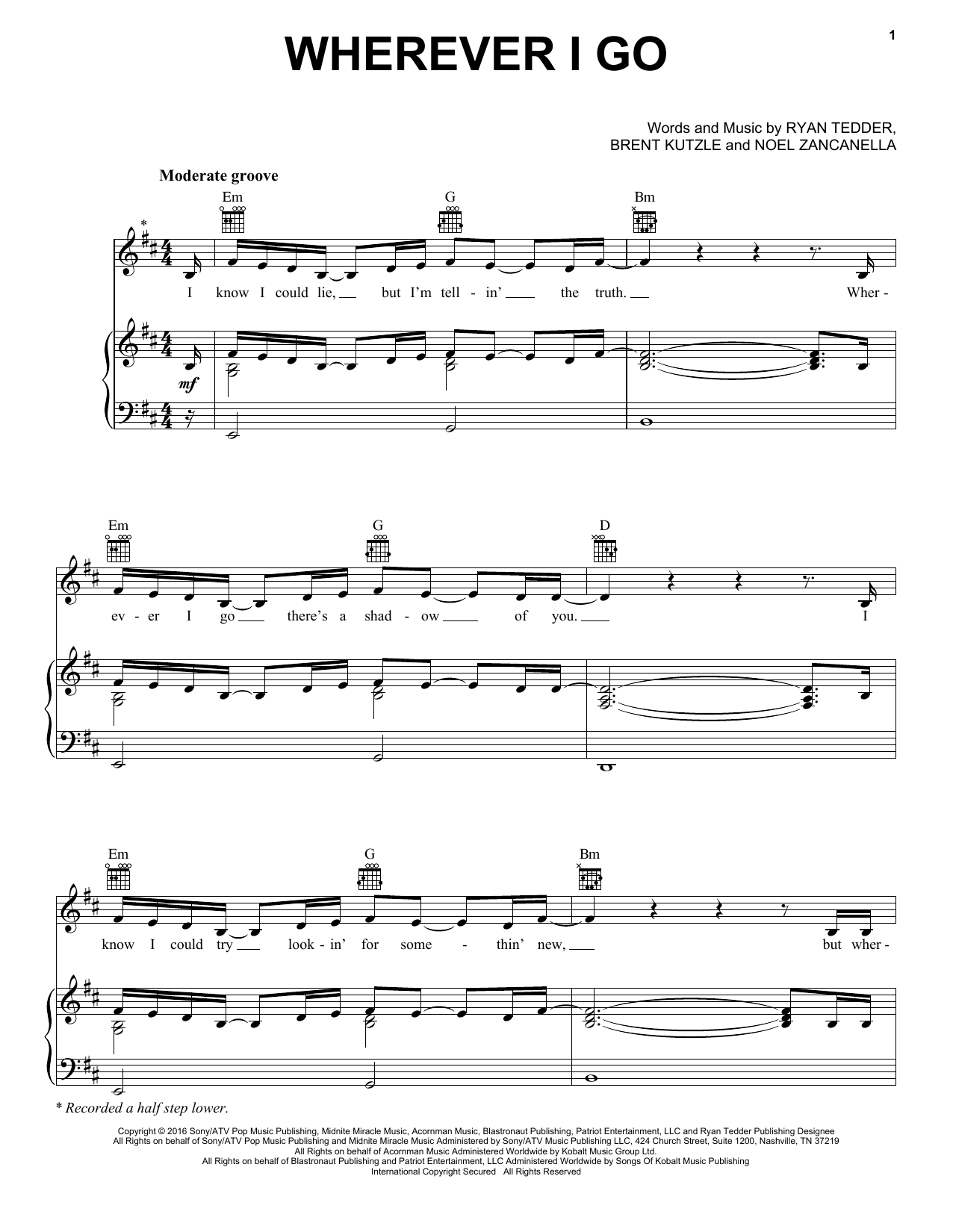 One Republic Wherever I Go sheet music, chords, lyrics - Printable PDF for Piano, Vocal & Guitar (Right-Hand Melody)