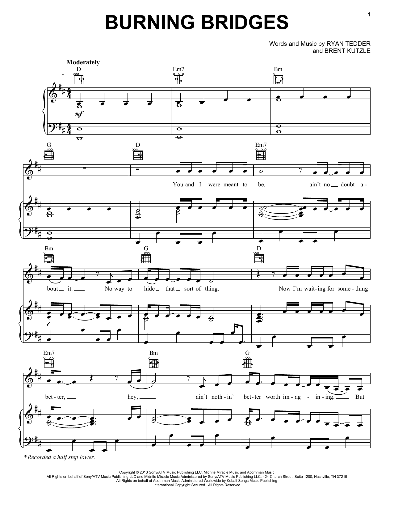 OneRepublic "Burning Bridges" Sheet Music
