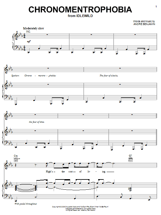 OutKast Chronomentrophobia sheet music, chords, lyrics - Printable PDF for Piano, Vocal & Guitar (Right-Hand Melody)