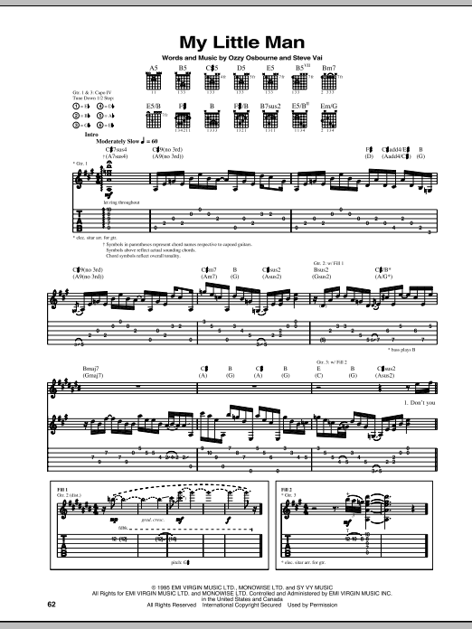 Ozzy Osbourne My Little Man sheet music, chords, lyrics - Printable PDF for Guitar Tab