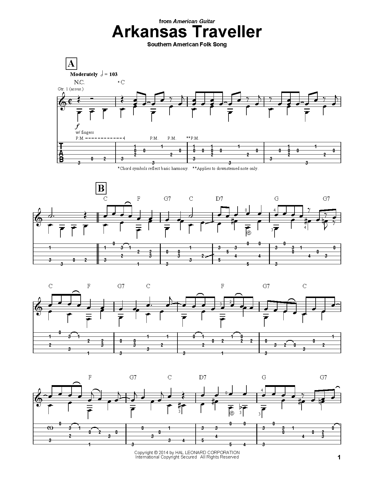Pat Donohue Arkansas Traveler sheet music, chords, lyrics - Printable PDF for Guitar Tab