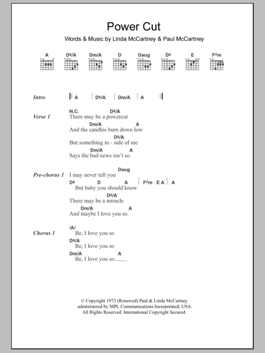 Paul McCartney Power Cut sheet music, chords, lyrics - Printable PDF for Lyrics & Chords