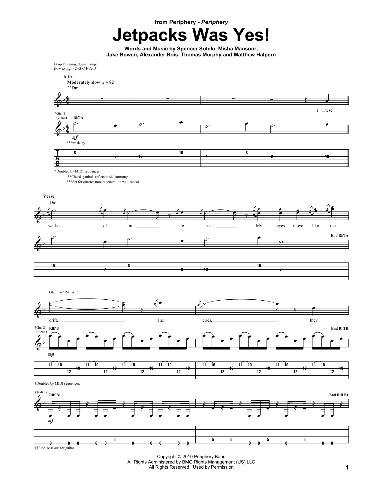 Periphery Jetpacks Was Yes! sheet music, chords, lyrics - Printable PDF for Guitar Tab