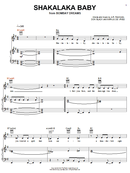 Preeya Kalidas Shakalaka Baby sheet music, chords, lyrics - Printable PDF for Piano, Vocal & Guitar (Right-Hand Melody)