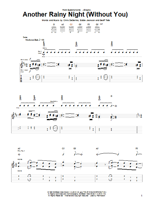 Queensryche Another Rainy Night (Without You) sheet music, chords, lyrics - Printable PDF for Guitar Tab