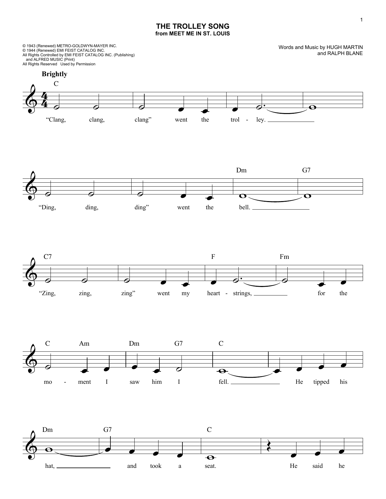 Ralph Blane The Trolley Song sheet music, chords, lyrics - Printable PDF for Melody Line, Lyrics & Chords