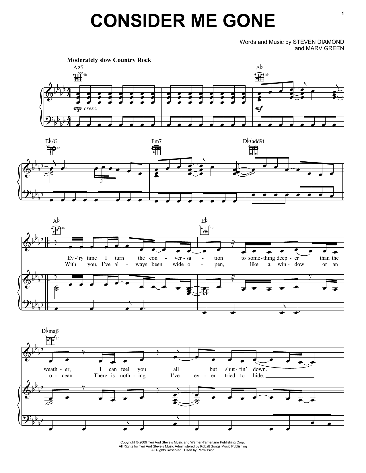 Reba McEntire Consider Me Gone sheet music, chords, lyrics - Printable PDF for Piano, Vocal & Guitar (Right-Hand Melody)
