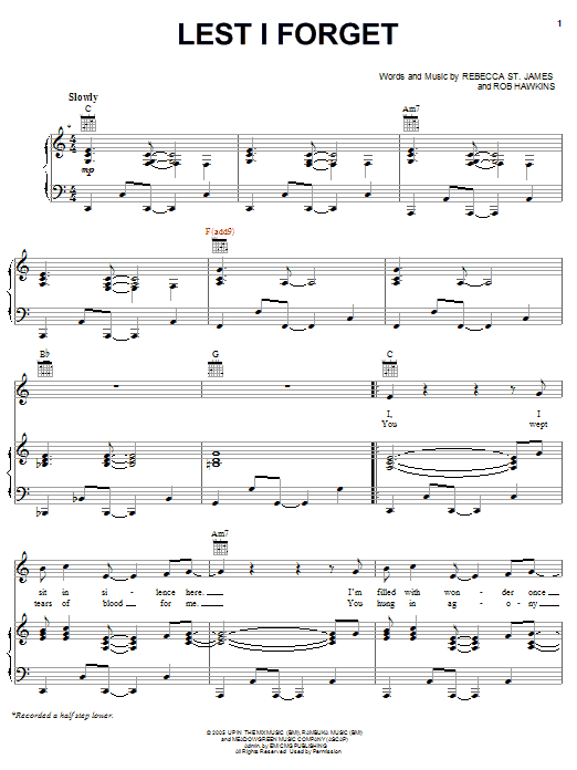 Rebecca St. James Lest I Forget sheet music, chords, lyrics - Printable PDF for Piano, Vocal & Guitar (Right-Hand Melody)