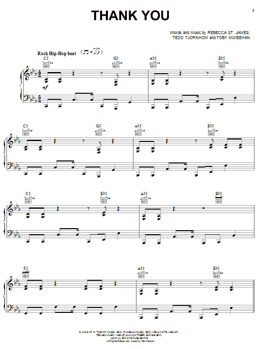 Rebecca St. James Thank You sheet music, chords, lyrics - Printable PDF for Piano, Vocal & Guitar (Right-Hand Melody)