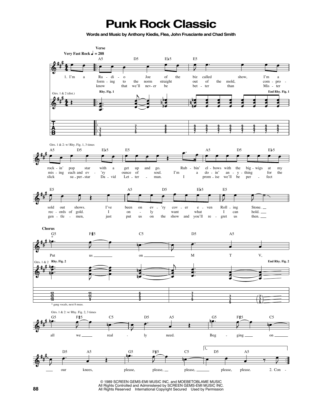 Red Hot Chili Peppers Punk Rock Classic sheet music, chords, lyrics - Printable PDF for Guitar Tab