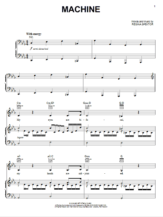 Regina Spektor Machine sheet music, chords, lyrics - Printable PDF for Piano, Vocal & Guitar (Right-Hand Melody)