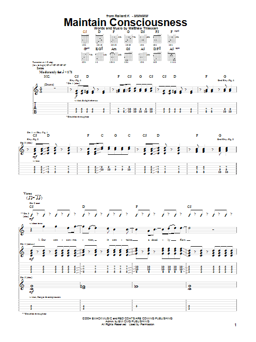 Relient K Maintain Consciousness sheet music, chords, lyrics - Printable PDF for Guitar Tab