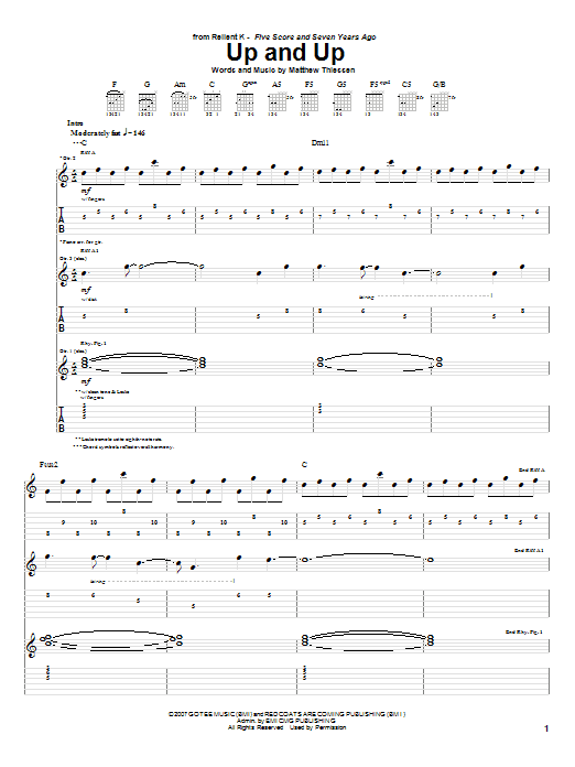 Relient K Up And Up sheet music, chords, lyrics - Printable PDF for Guitar Tab