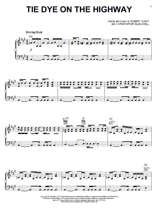 Download 8-Page Robert Plant Tie Dye On The Highway sheet music | Printable PDF Digital Notes