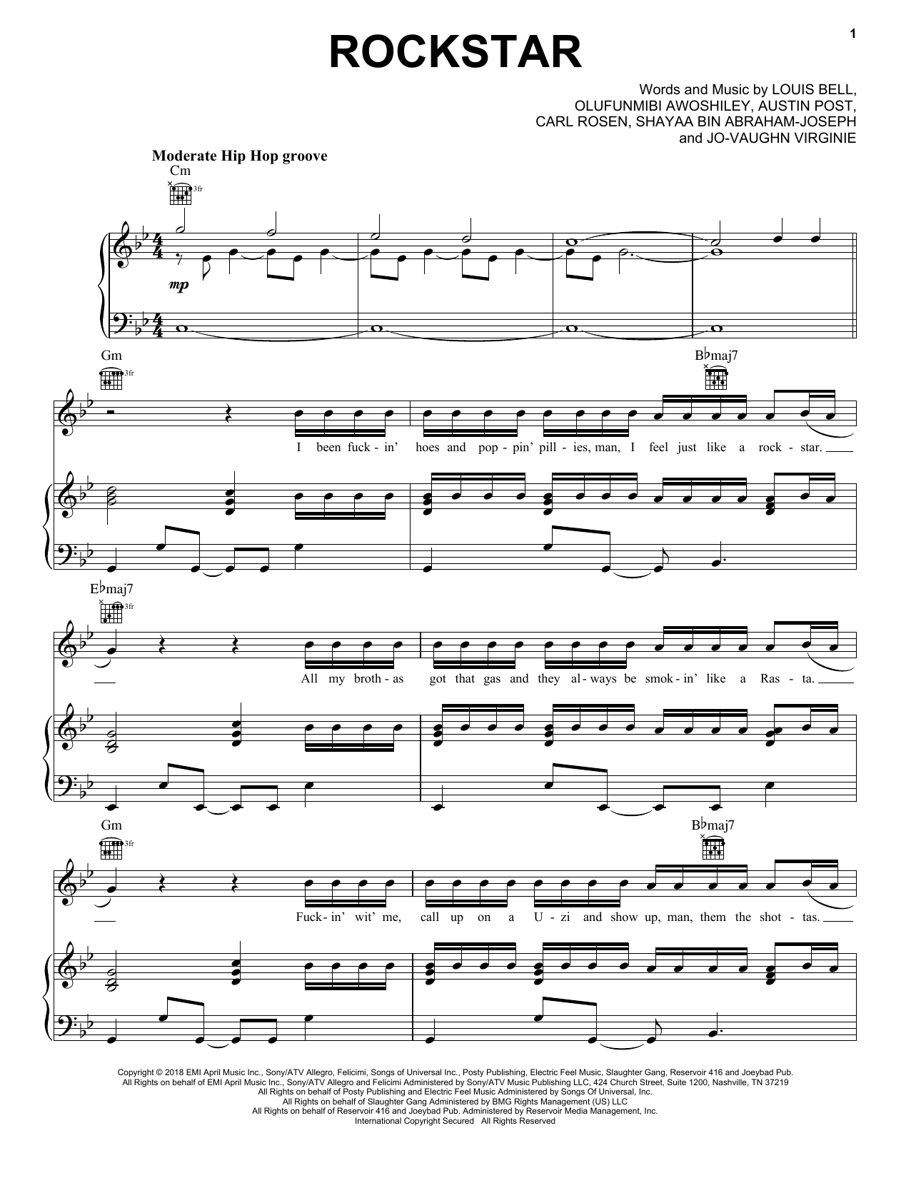 Post Malone (feat. 21 Savage) Rockstar sheet music, chords, lyrics - Printable PDF for Piano, Vocal & Guitar (Right-Hand Melody)