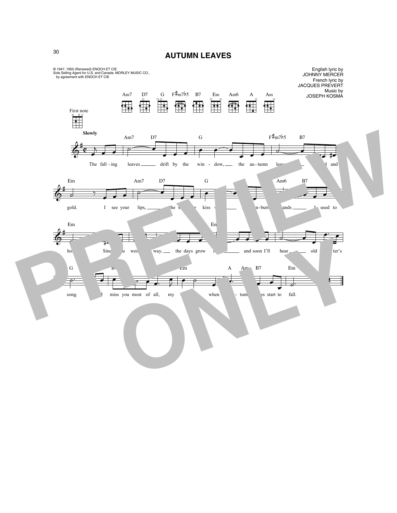 * Click playback or notes icon (wheel cog) at the bottom of the interactive music notes viewer and check "Autumn Leaves" playback & transpose functionality prior to purchase.