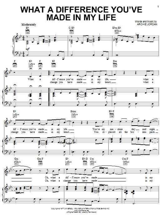 So, go ahead and download What A Difference You've Made In My Life sheet music and start playing this wonderful score in bare minutes.