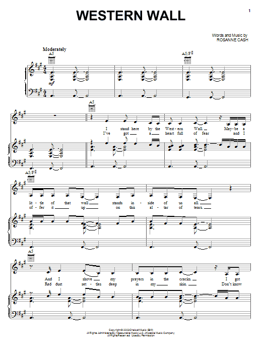 Rosanne Cash Western Wall sheet music, chords, lyrics - Printable PDF for Piano, Vocal & Guitar (Right-Hand Melody)