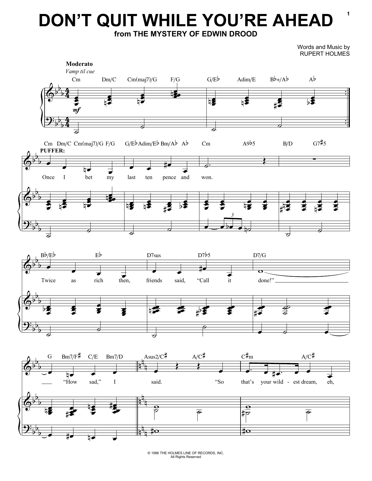 Rupert Holmes Don't Quit While You're Ahead (from The Mystery of Edwin Drood) sheet music, chords, lyrics - Printable PDF for Piano & Vocal