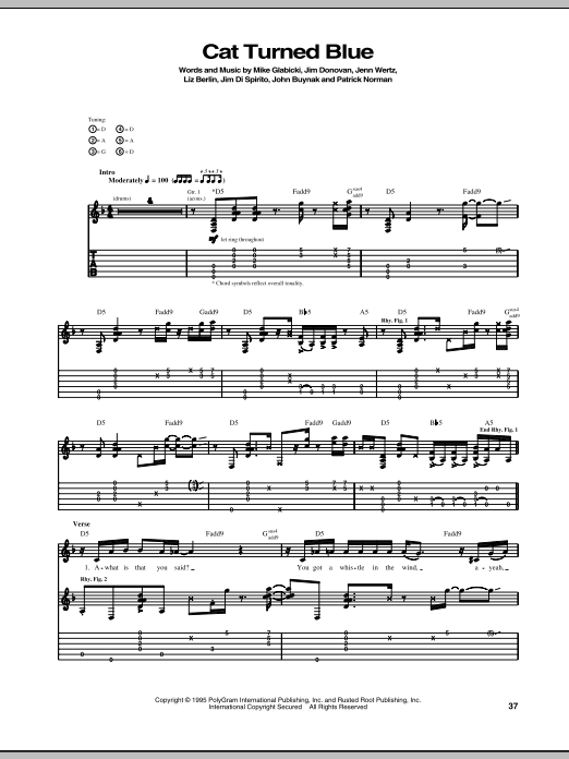 Rusted Root Cat Turned Blue sheet music, chords, lyrics - Printable PDF for Guitar Tab