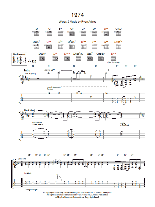 Ryan Adams 1974 sheet music, chords, lyrics - Printable PDF for Guitar Tab