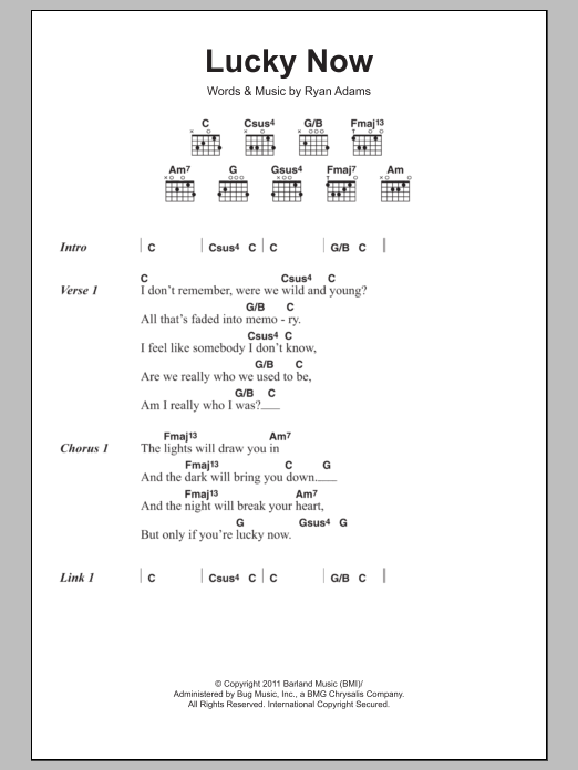 Ryan Adams Lucky Now sheet music, chords, lyrics - Printable PDF for Lyrics & Chords