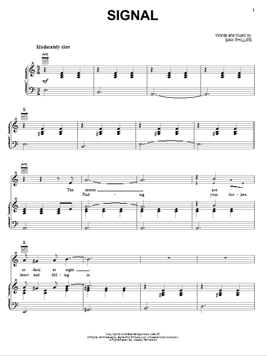 Sam Phillips Signal sheet music, chords, lyrics - Printable PDF for Piano, Vocal & Guitar (Right-Hand Melody)